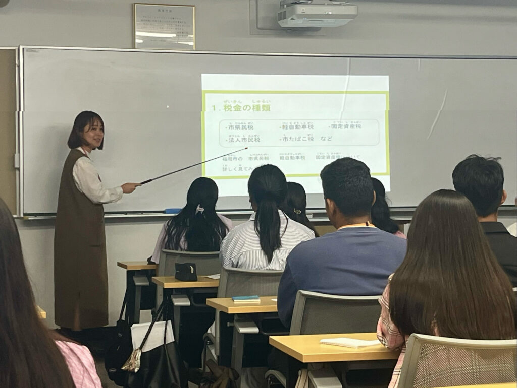 当財団では、福岡に住む外国人が快適に生活できるように、自転車などの交通マナー、防犯、ごみ出しルール、国民健康保険制度、令和7年度から税金に関する出前講座を実施しています。