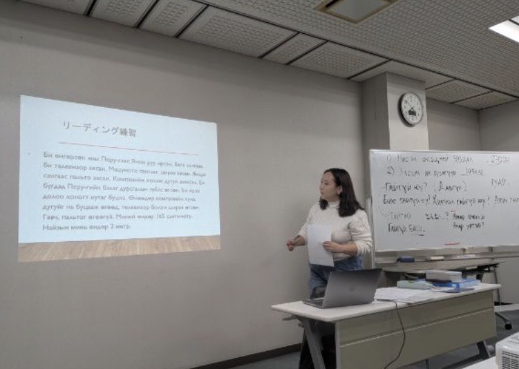 8か月間の授業では、モンゴル人と実際にコミュニケーションをとる場面を想定し、実用的な会話表現を中心に指導しました。