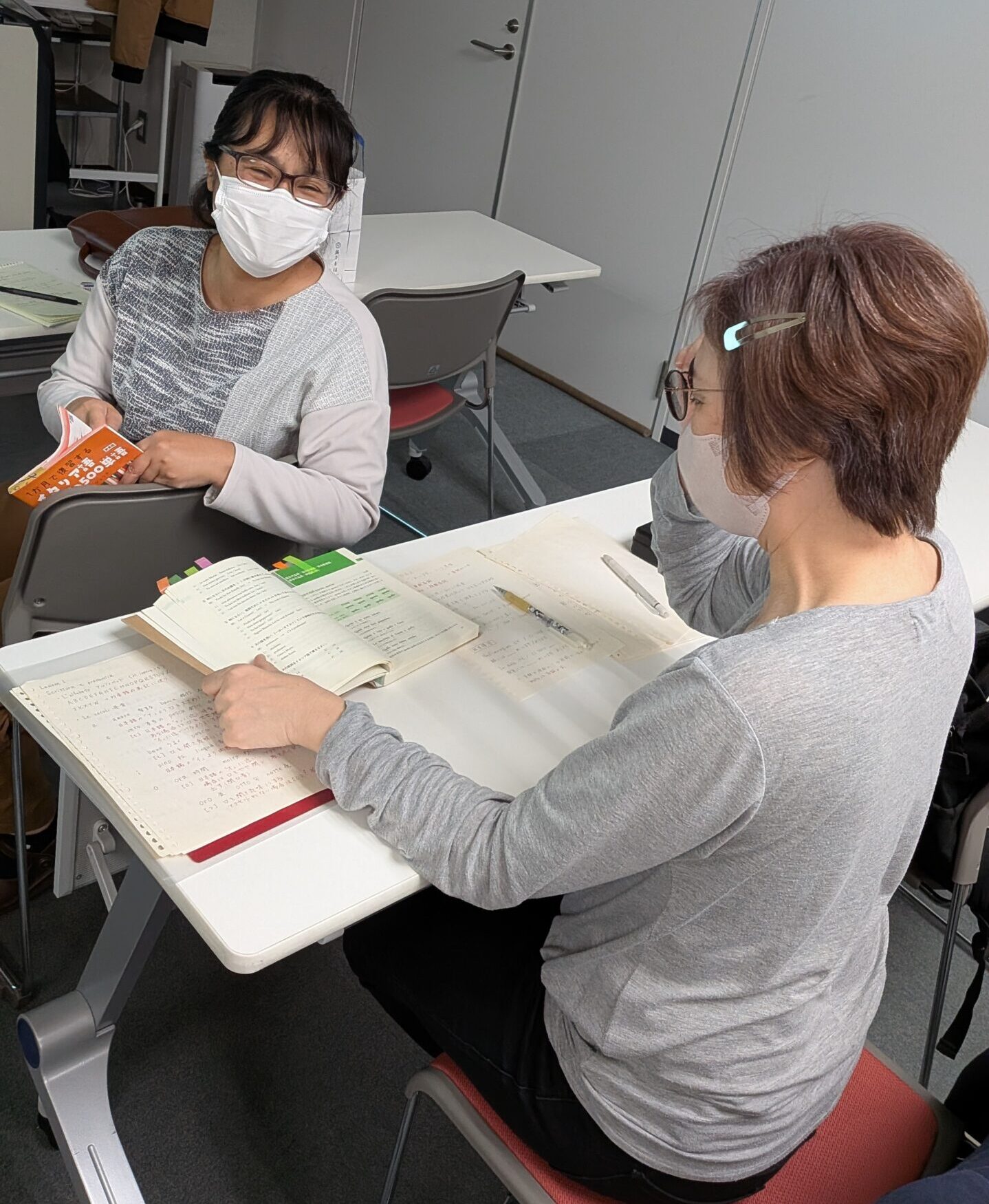 特徴として、復習を重視した授業構成が挙げられます。毎回、前回学習した文法を使った作文課題を出し、授業内で発表・添削を行うことで、間違いを共有し、受講生全体の理解を深めています。