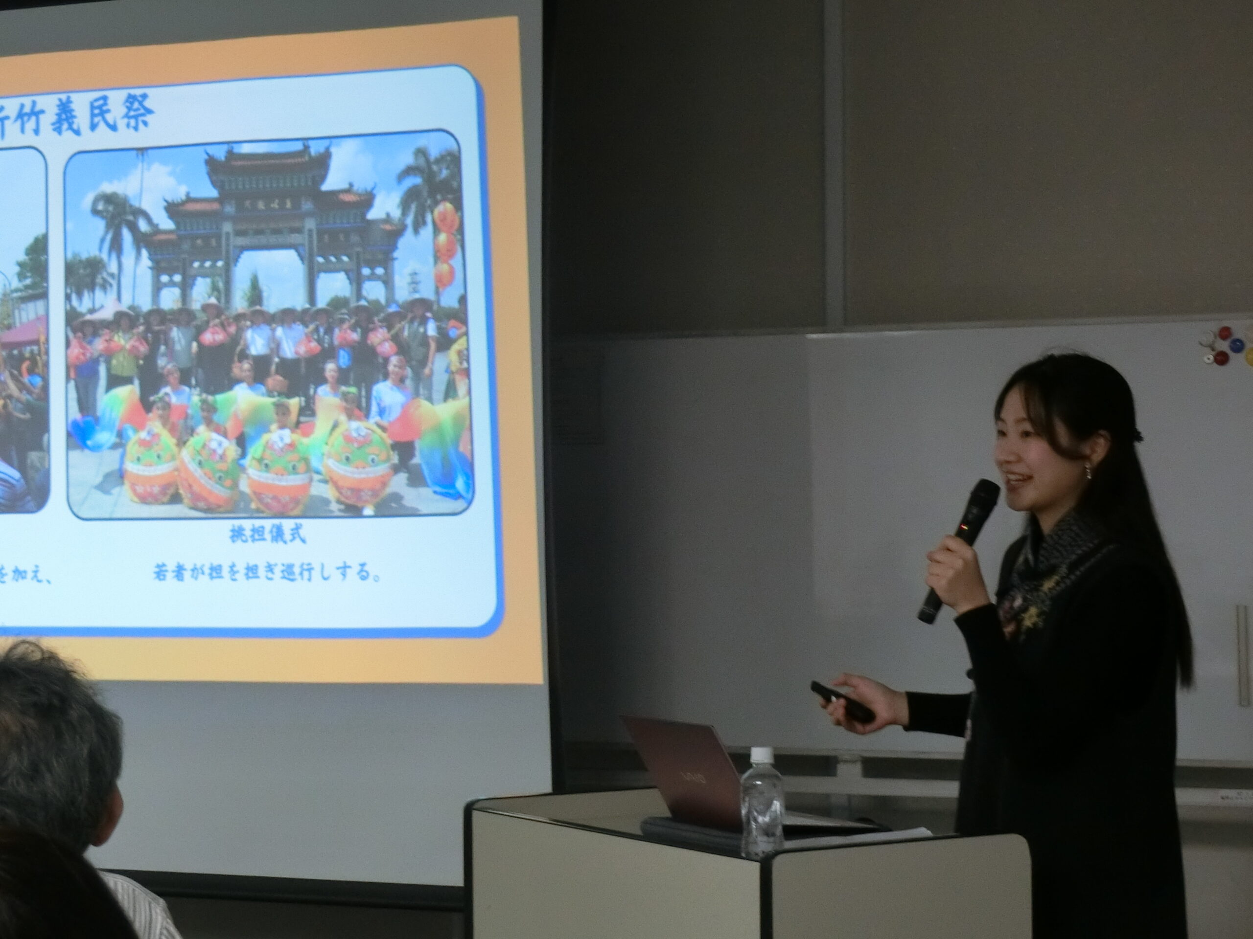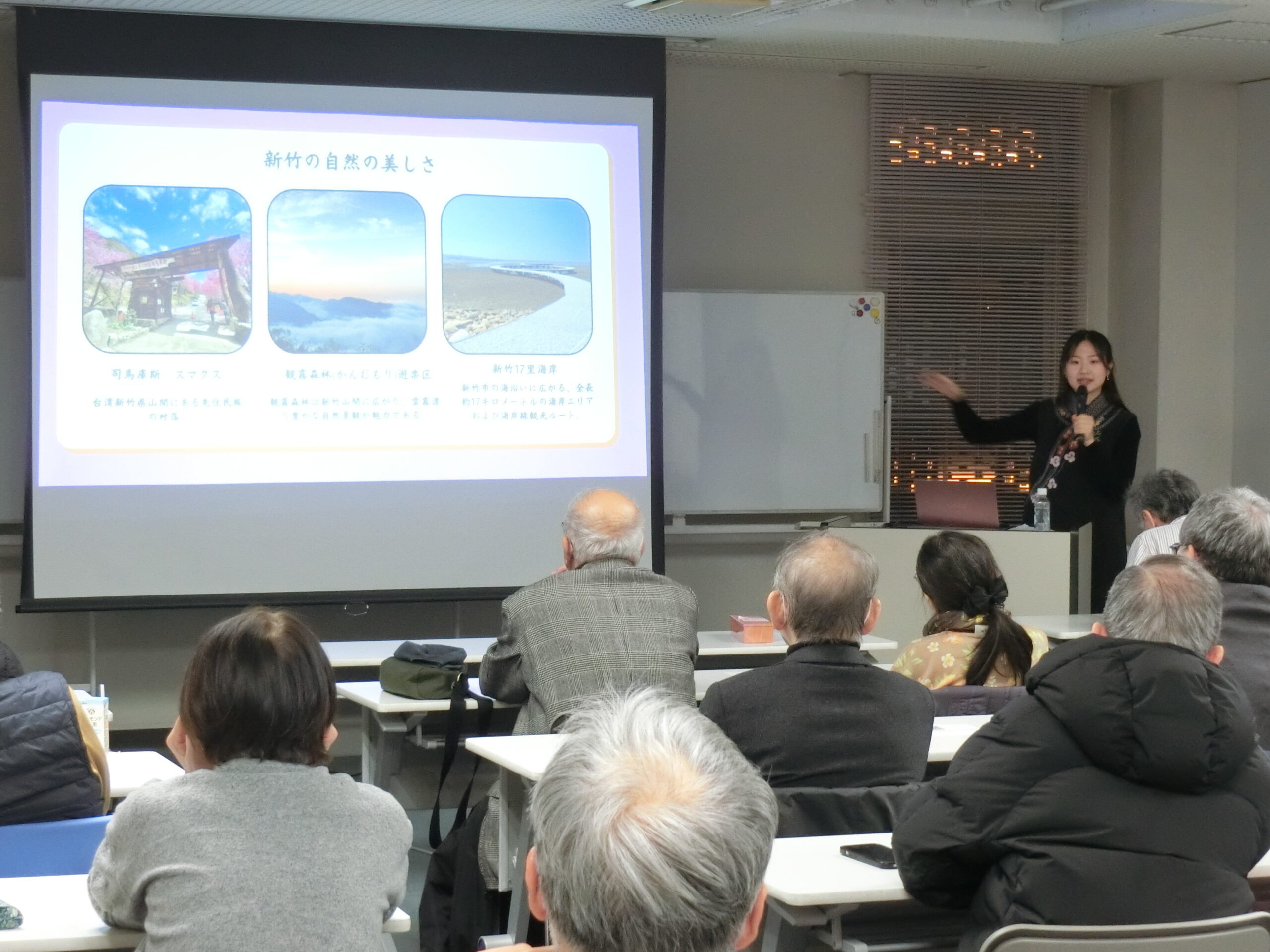 第202回外国人学生が語る「ふるさとの街と福岡」を開催しました。今回の講演会では、台湾出身の陳 海寧(チン カイネ)さんが、ふるさとの街新竹市の伝統的なお祭りや、ビーフンに代表される食文化、さらにはIT関連を中心とし発展を遂げる産業について紹介しました。