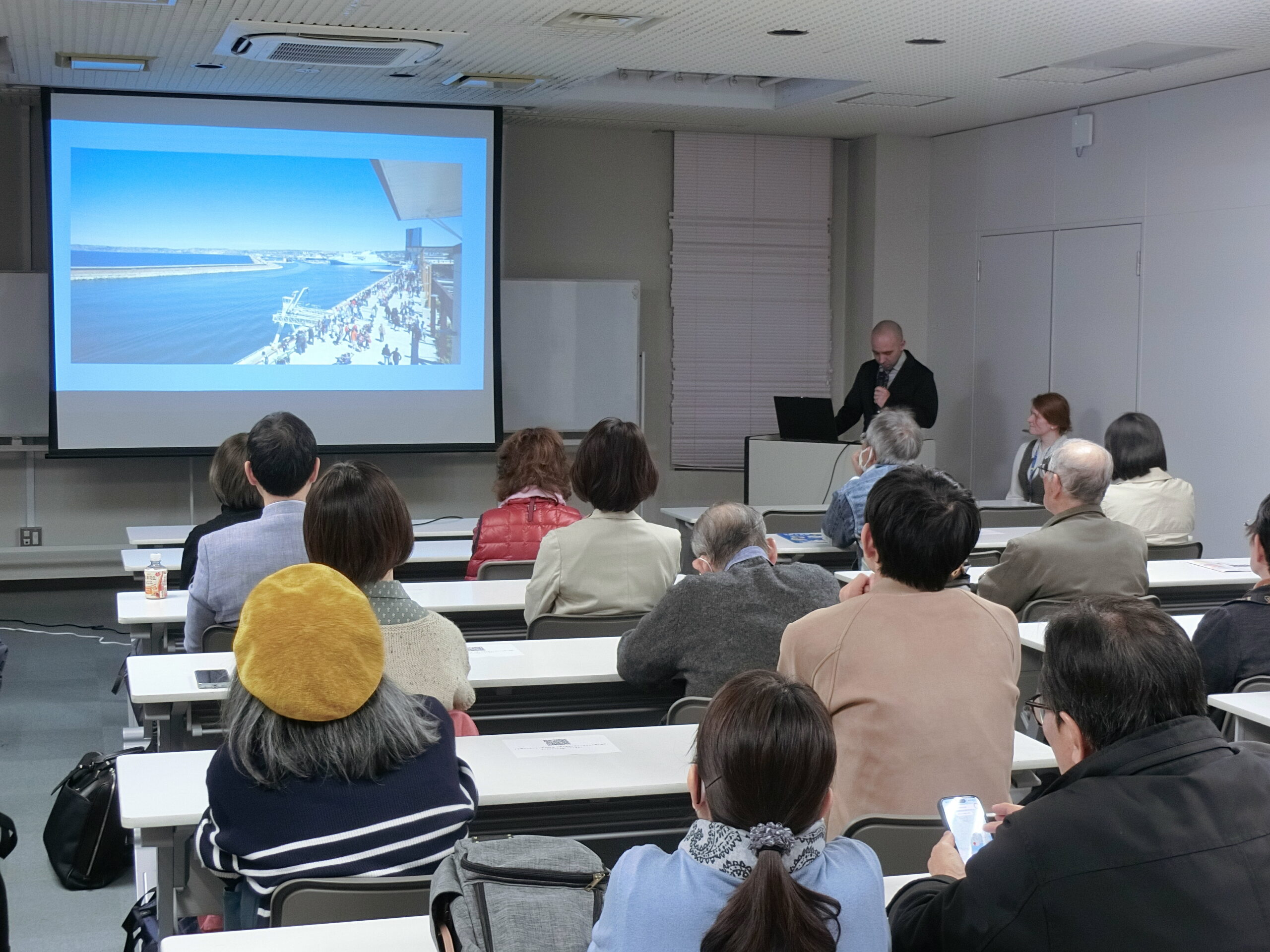 第203回外国人学生が語る「ふるさとの街と福岡」を開催しました! 今回は西南学院大学の留学生別科で日本語を学ぶド・ブレゼ クリストフさんが、ふるさとの街フランス・マルセイユの美しい海岸の景色や都市の独特な魅力、地域の長い歴史に加え、地元出身者ならではの詳細情報や伝統工芸についても紹介し、参加者の皆さんは普段は聞くことの出来ないマルセイユの情報を楽しんでいらっしゃいました。