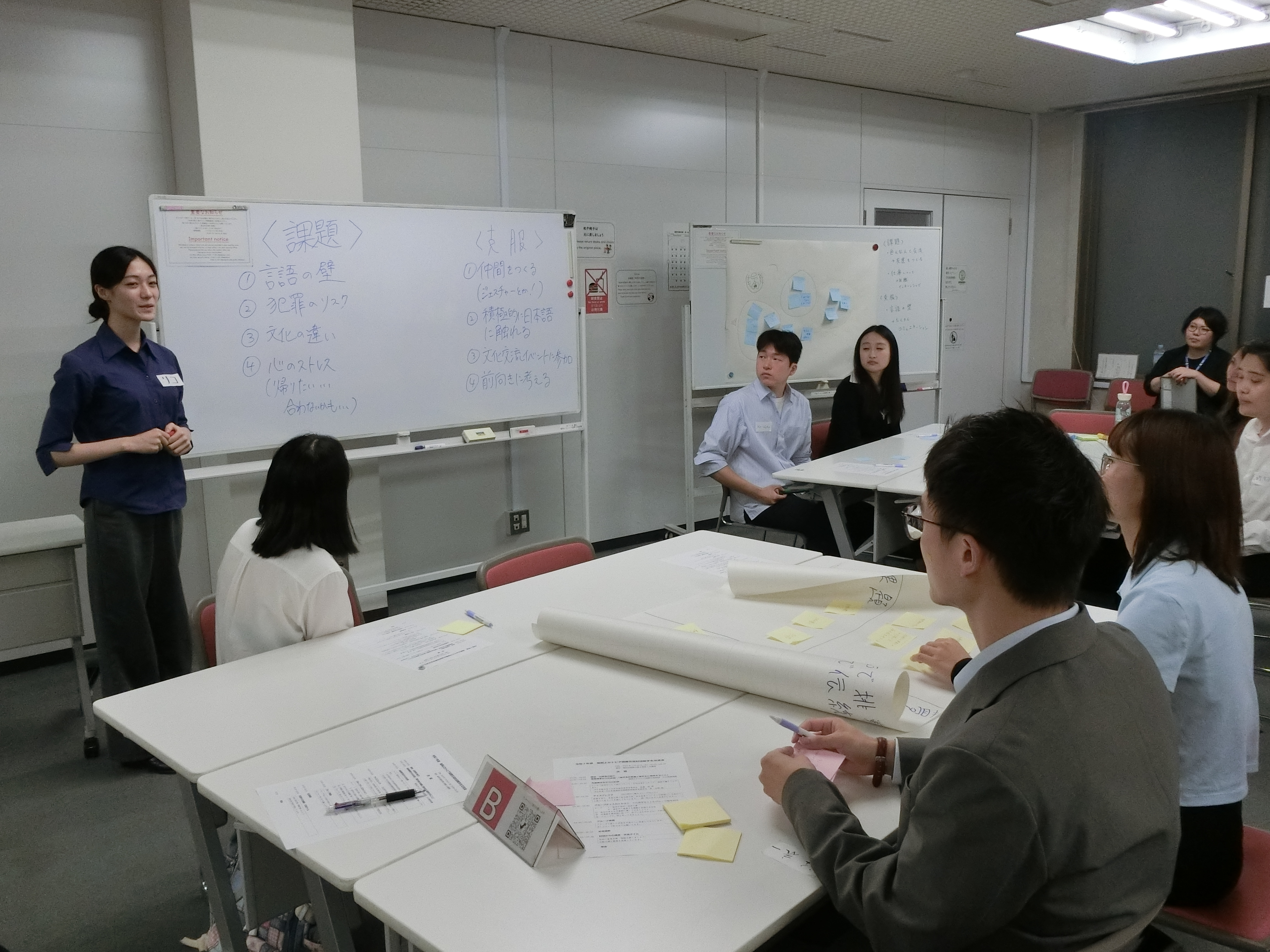 後半は、アイスブレイクゲームでお互いの緊張をほぐした後、福岡で学んでいる外国人留学生とこれから海外留学を予定している日本人大学生によるグループディスカッションを行い、「留学の目的・将来の夢」や「留学中に直面する課題と克服する方法」について話し合いました。